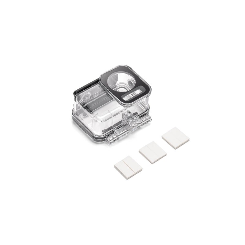 * Sluit voor gebruik het deksel van de batterijruimte en het deksel van de USB-C-poort en trek het beschermende deksel van de lens dicht. Het is aan te raden de waterdichte behuizing te installeren voor langdurig onderwater schieten of omgevingen met een hoge waterdruk. De Osmo Action 3 waterdichte behuizing is IP68 waterdicht. Gebruik de camera niet in warm waterbronnen of blootstellen aan corrosieve vloeistoffen.