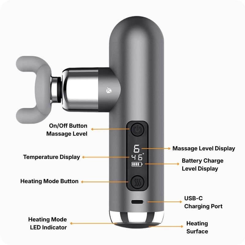 Na iServices encontra o melhor a melhor pistola de massagem com 6 níveis de massagem, 3 cabeças amovíveis, 3 níveis de aquecimento e um ecrã LCD com várias notificações. O carregamento é feito via USB-C.